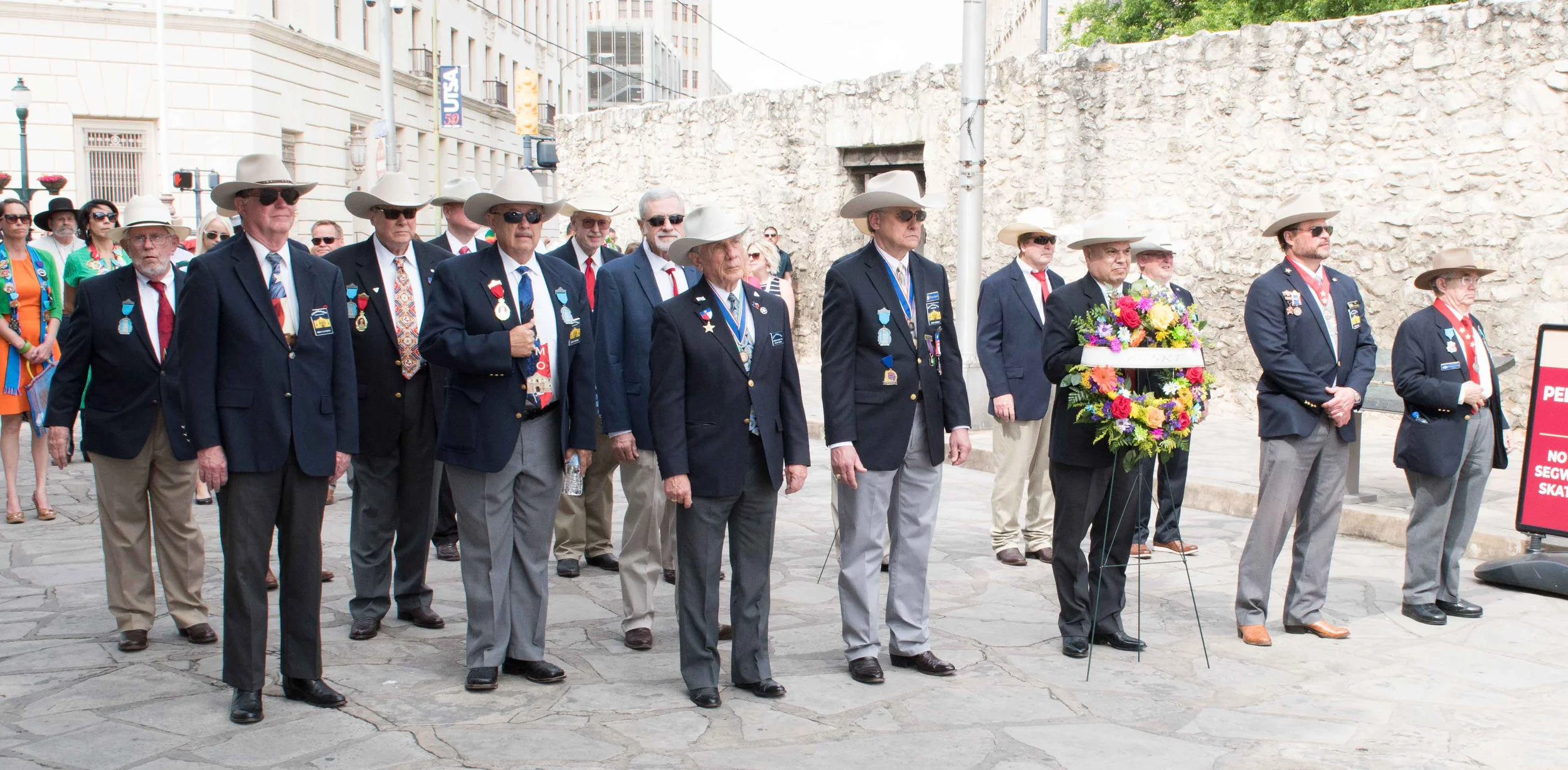 Members of the Alamo Chapter of The SRT along with The Daughters of The Republic of Texas gather together in Alamo Plaza to celebrate Texas Independence Day. On this date, the Texas Declaration of Independence was signed at Washington-on-the-Brazos. The 59 signers met in a large frame blacksmith shop with only cotton cloth over the window openings to keep the cold out Sam Houston was there along with 58 other representatives, 52 of which were American-born. Many of the signers wished to be at the battlefields, but Houston convinced the signers that this declaration would give them some basis of legality and would help draw more help from the United States.