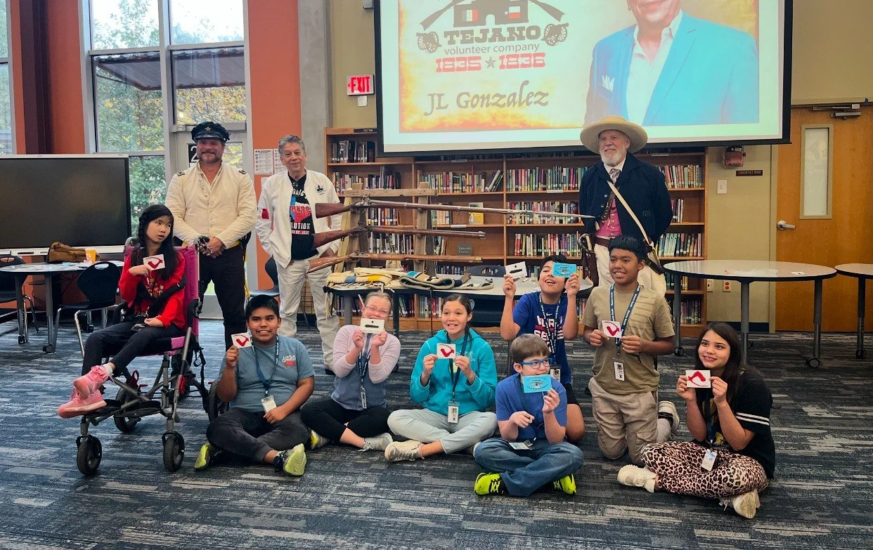 On November 13th & 14th the Sons of the Republic of Texas were asked to speak at Boerne Middle School South near San Antonio. Over thirty-two, 20-minute presentations were demonstrated by each speaker over the course of two days. SRT member George Benavides discussed his ancestor Gregorio Esparza, Trevor Wardlaw focused on the Parker Family & the Comanche raid on their home, John Meehan went into the tragedy that be felled the men at Goliad, Jason Chall expanded on the sacrifice of the Immortal 32 from Gonzales & author Jose Gonzales presented Juan Seguin & the Tejanos.
